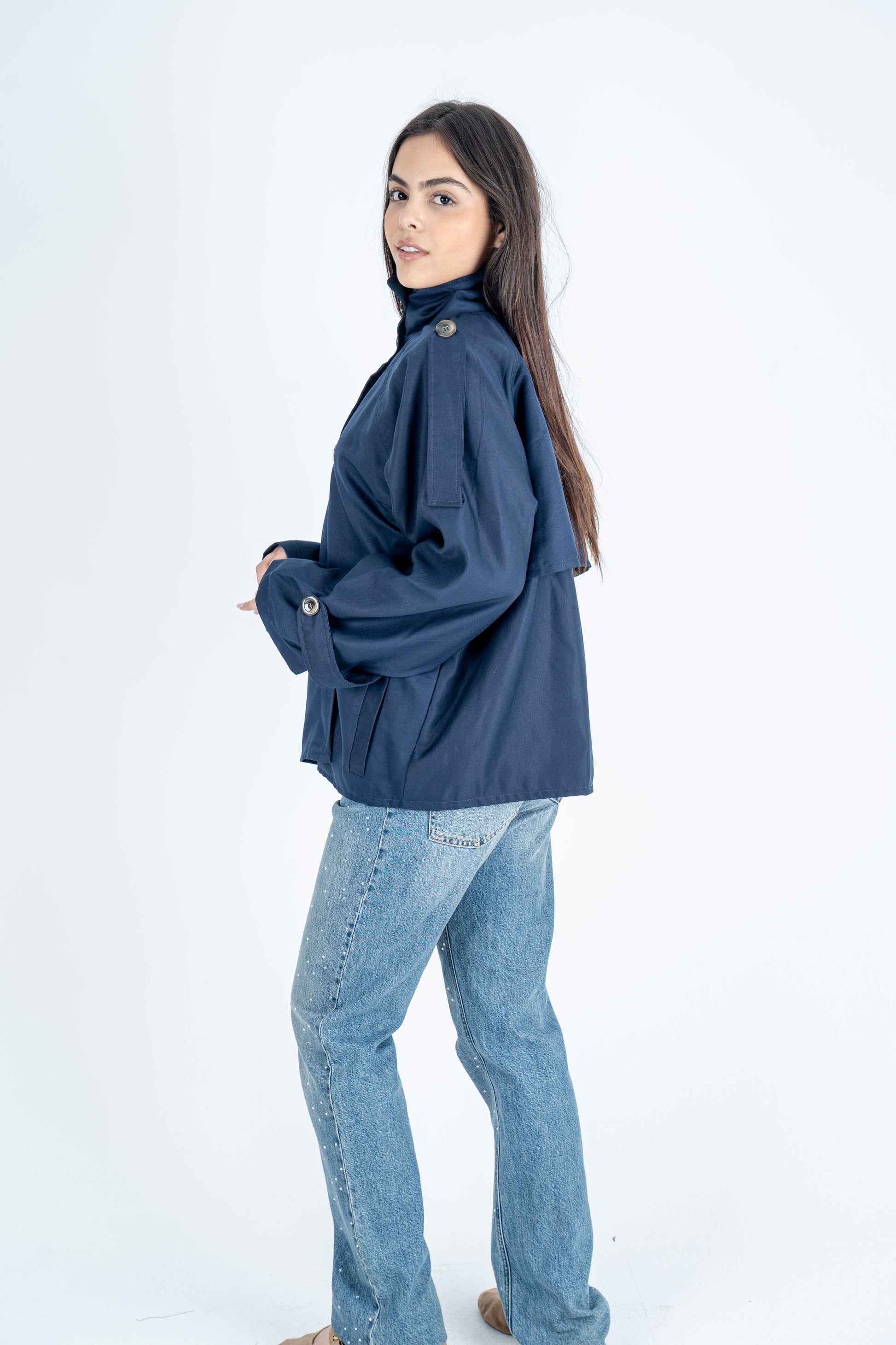 Short Belted Trench Coat – Navy Blue
